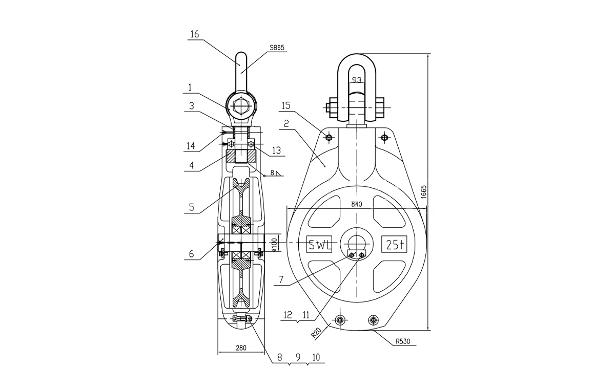 BLOC DE POULIE EN ACIER FONTE