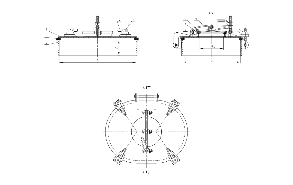 Fonctionnement convivial : équipé de 6 poignées de chien en fonte qui permettent une fixation rapide et sécurisée; Le bras intégré simplifie l'ouverture / la fermeture, même pour les opérateurs uniques.